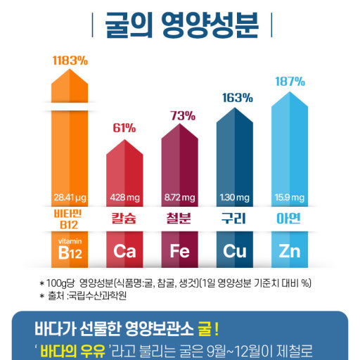 옛날부터 굴은 기력이 없을 때 찾는 대표적인 스태미나 음식이었죠. 그 이유는 굴 속에 우리 몸에 꼭 필요한 영양소가 가득 들어있기 때문이에요.